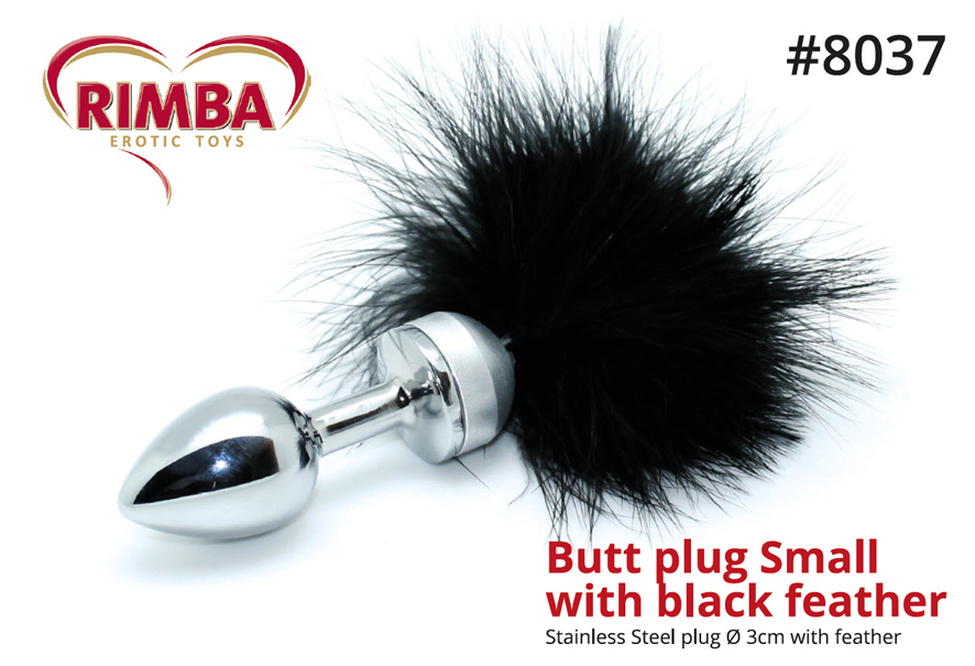 / 8037 Metal Butt Plug with Black Feathers