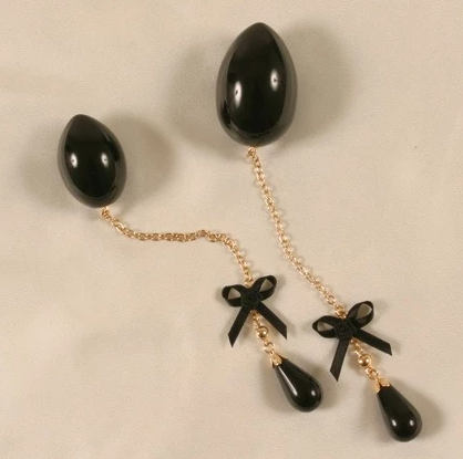 / OE1 Insertable black egg with gold chain, black bow, and pendant